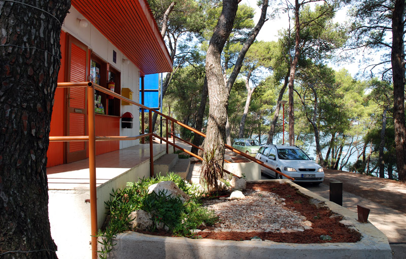 Die Stellplätze liegen schattig unter Pinien und die überwiegende Anzahl von ihnen verfügt über einen Stromanschluß. Es besteht die Möglichkeit, Mobilheime zu mieten.
