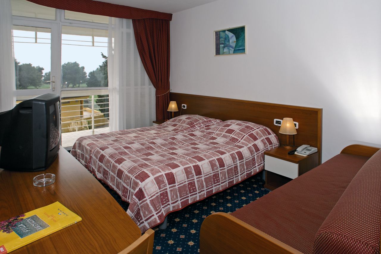 Das Holiday Hotel verfügt über 192 komfortable und modern eingerichtete Zimmer auf vier Etagen. Alle Zimmer sind klimatisiert und ausgestattet mit Telefon, Sat-TV, Kühlschrank und Föhn. Die Zimmer mit Meerblick verfügen über einen Balkon mit einem wunderschönen Blick auf die Bucht von Medulin.